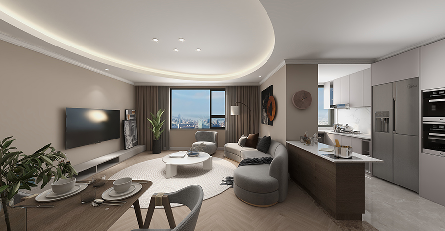 案例簡介:本案例的業(yè)主是一位獨(dú)居人士且近期沒有結(jié)婚的打算,因此房屋面積并不大,在與設(shè)計(jì)師交流時(shí),業(yè)主明確的提出休憩空間一定要強(qiáng)調(diào)舒適,而整個(gè)住宅則要突出自己的個(gè)性與品位。設(shè)計(jì)師按照業(yè)主的想法將空間打造成半開放式設(shè)計(jì),同時(shí)將約一半面積打造成為休憩空間,以滿足業(yè)主日常休憩、辦公需求。休憩空間以外的區(qū)域則打造成廚房與多功能空間,滿足做飯、會客等多種需求。
