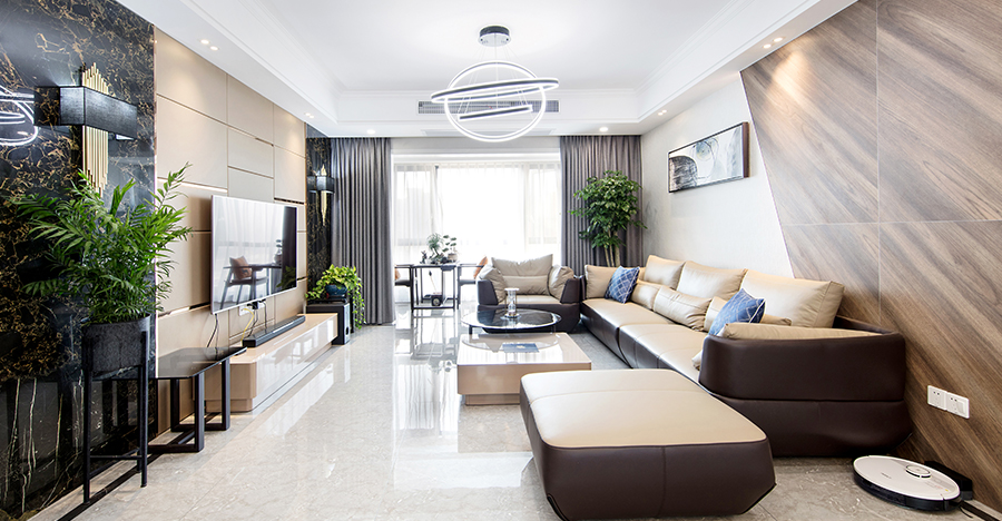 本案為現(xiàn)代風(fēng)格,在滿足客戶收納的前提下,讓家里的每個(gè)地方都是一個(gè)景點(diǎn),沙發(fā)背景墻的設(shè)計(jì)現(xiàn)代立體,與玄關(guān)搭配,帶來一種時(shí)光穿梭的感覺