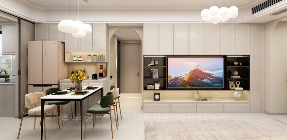 白色和米黃色之間的一種飽和度低的駝色系,色彩充滿清甜感。相對于純白多了一份醇厚,清清淡淡之間呈現(xiàn)出軟糯的溫柔質(zhì)感,優(yōu)雅而恬靜,設(shè)計(jì)元素多采用奶油、石膏線、拱門、壁龕搭配可愛軟萌的家