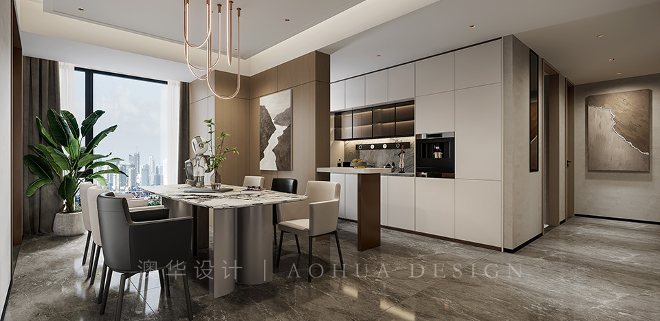 打通了原有的次衛(wèi)空間,做了吧臺和餐邊柜的設(shè)計,讓餐廳更有家的氛圍,使用的功能更加全面,整體空調(diào)大氣時尚。