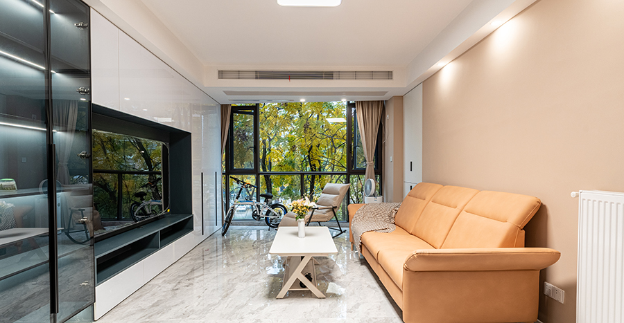 將設(shè)計立于生活本質(zhì),電視背景做成墻柜,與玄關(guān)柜、展示柜結(jié)合,一體化設(shè)計契合居者簡約的生活方式,亦承擔起整個公區(qū)的收納,讓客廳空間整潔有序。