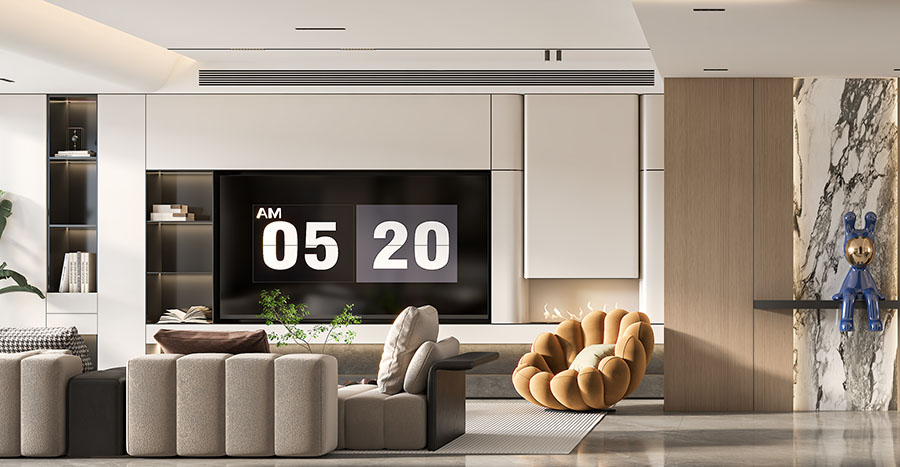 與大陽臺打通,大規(guī)格地磚通鋪,背景墻延伸,更顯大空間