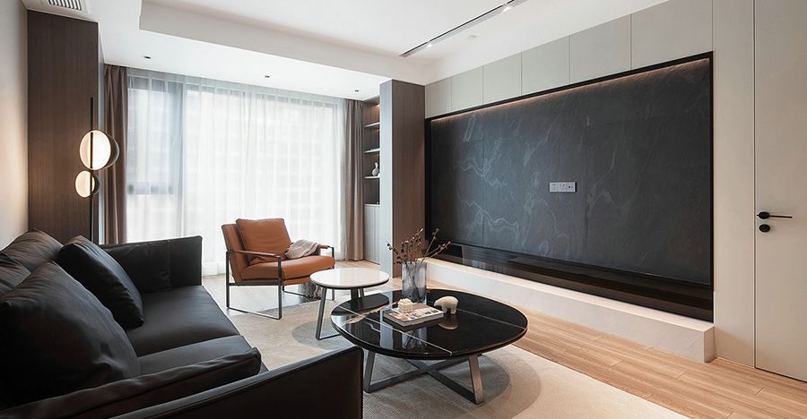 與大陽臺(tái)打通,地板通鋪,背景墻做內(nèi)嵌式加隱形門,不同色調(diào)材質(zhì)的碰撞,增強(qiáng)美感及整體統(tǒng)一性。