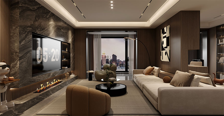 風格上,采用意識輕奢理念,色彩運用上傾向于沉穩(wěn)色調,營造出一種格調高雅且沉穩(wěn)的氛圍。設計注重簡約點綴,避免繁復裝飾,旨在為客戶打造既簡單舒適又不失品味與內涵的空間環(huán)境。