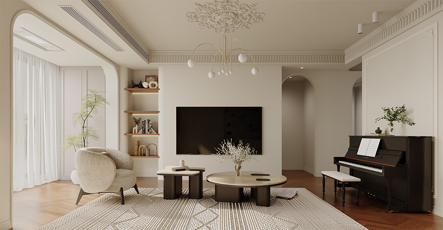 以中式古韻為魂,融合適老功能,用木質肌理、雅致配色與傳統(tǒng)元素勾勒歲月沉淀的溫情居所,兼顧舒適與文化意境。